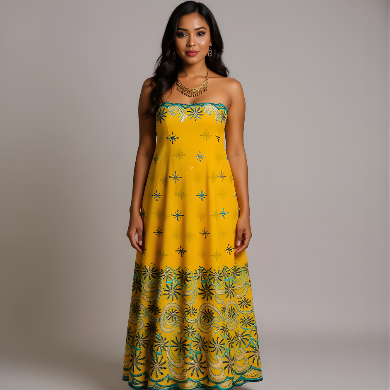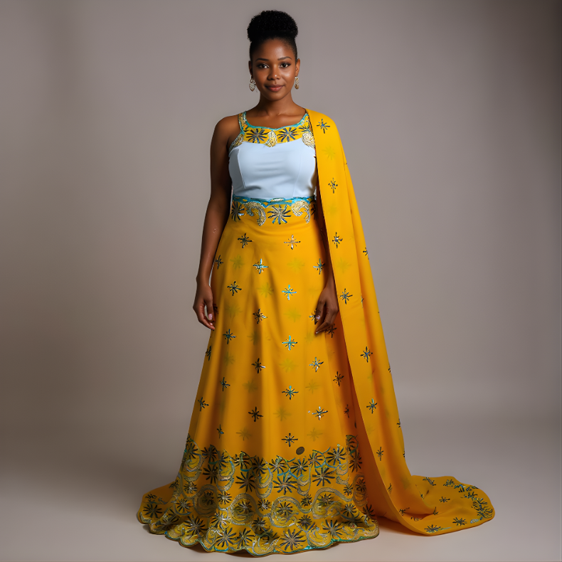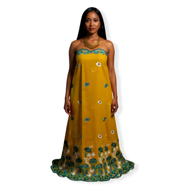 Le Salouva, une étoffe non cousue qui libère votre créativité ! Traditionnelle et tendance, elle se porte nouée à la poitrine, en robe ou en jupe longue. Adoptez le Salouva, une pièce polyvalente et élégante pour toutes les occasions.