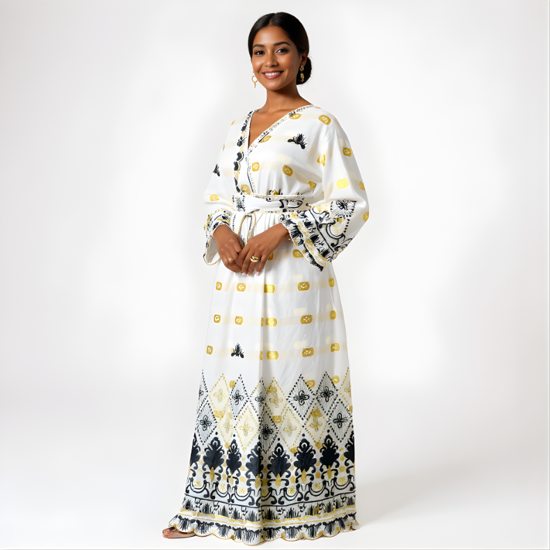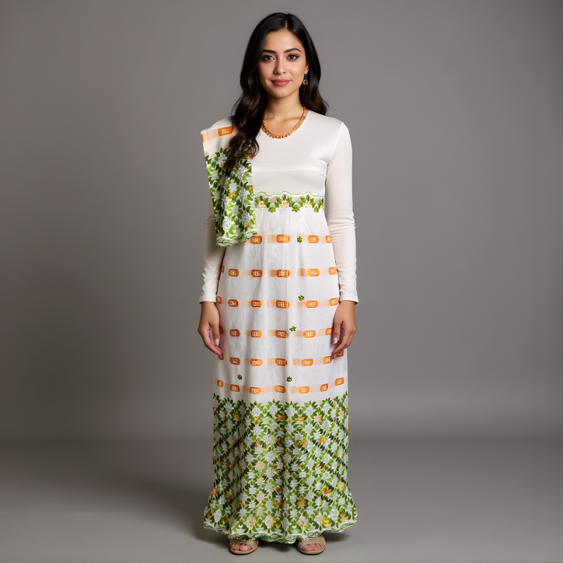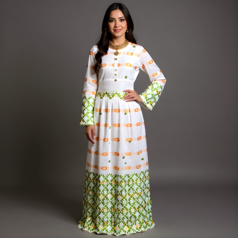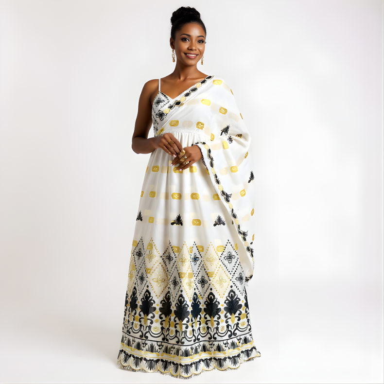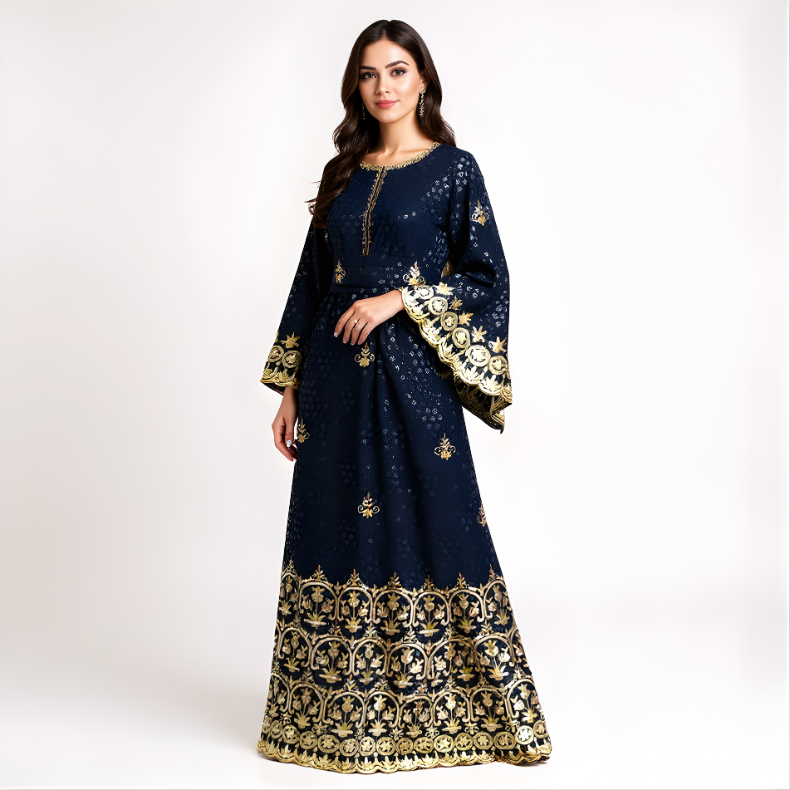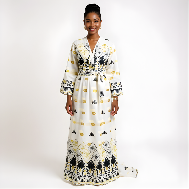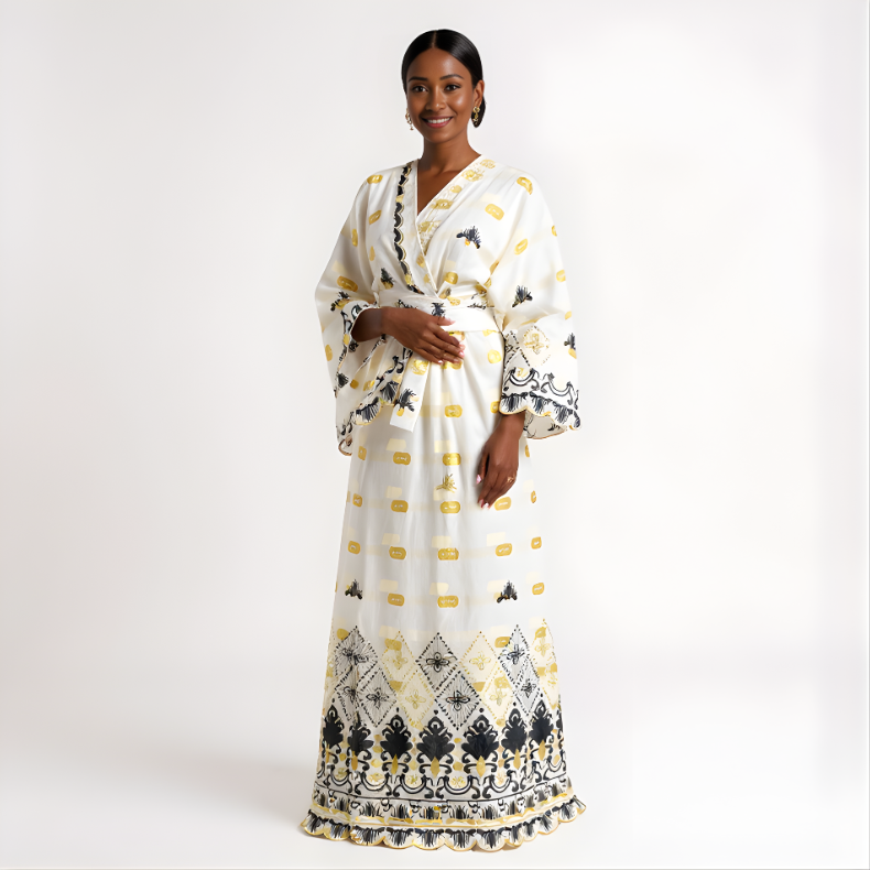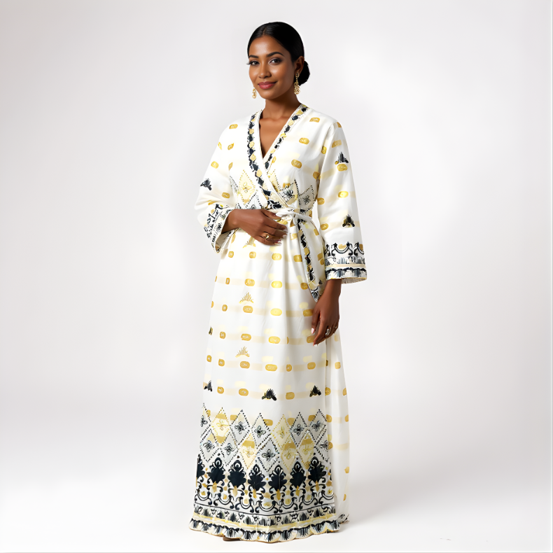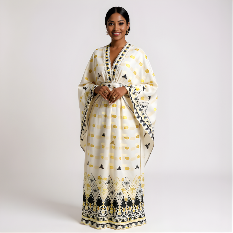 Grâce à son contraste de couleurs et à la richesse de ses broderies, ce modèle est idéal pour les cérémonies, mariages, fêtes culturelles, événements religieux ou toute occasion où l’élégance est essentielle. Cette Salouva met en valeur toutes les silhouettes et attire le regard par son équilibre parfait entre tradition et sophistication.