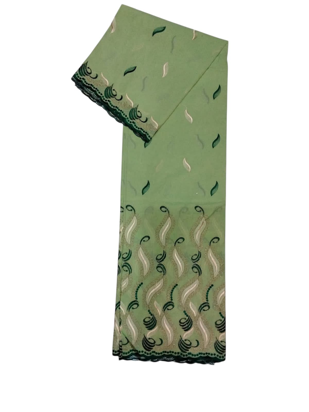 La Salouva Crystal Vert/Kaki incarne l’équilibre parfait entre fraîcheur, élégance et tradition africaine. Son tissu vert léger, confectionné en dentelle suisse 100 % coton, offre une sensation de douceur et de confort absolu. Les broderies aux nuances vertes et kaki, finement travaillées, apportent une touche de contraste raffinée et moderne.