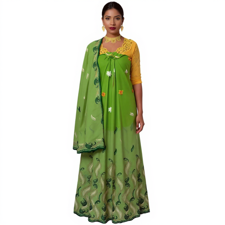 Couleur : Vert léger avec broderies vertes et kaki pour un rendu harmonieux.
