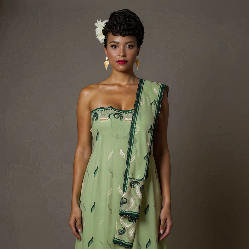 Choisir la Salouva Crystal Vert/Kaki, c’est opter pour un tissu haut de gamme qui évoque la nature, la sérénité et la beauté intemporelle.
