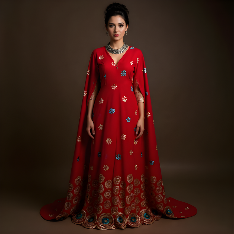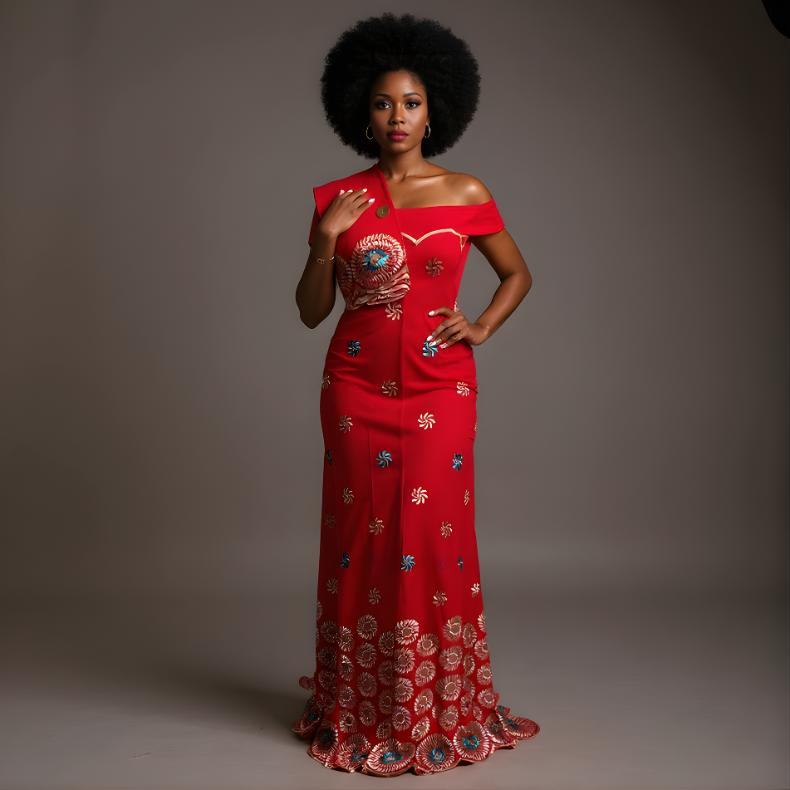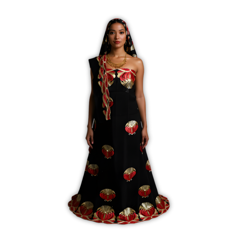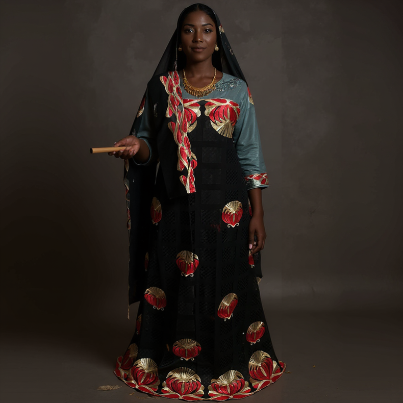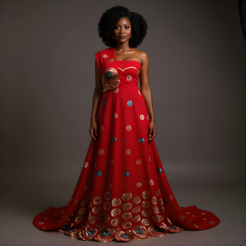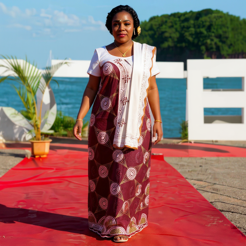 La Salouva Broderies Rouge Vif se distingue par son mélange unique de tradition et d’éclat moderne. Sa couleur rouge vive, vibrante et pleine d’énergie, symbolise la confiance, la force et la féminité. C’est une teinte puissante, idéale pour celles qui souhaitent s’illuminer lors des grands moments.