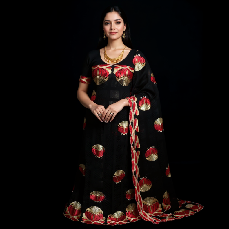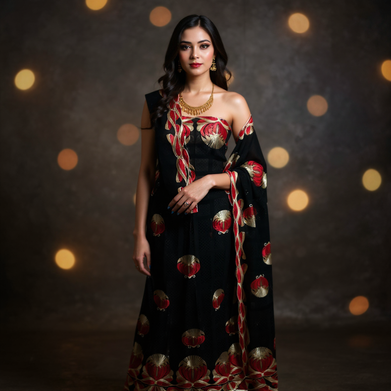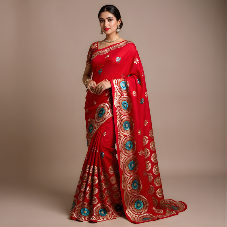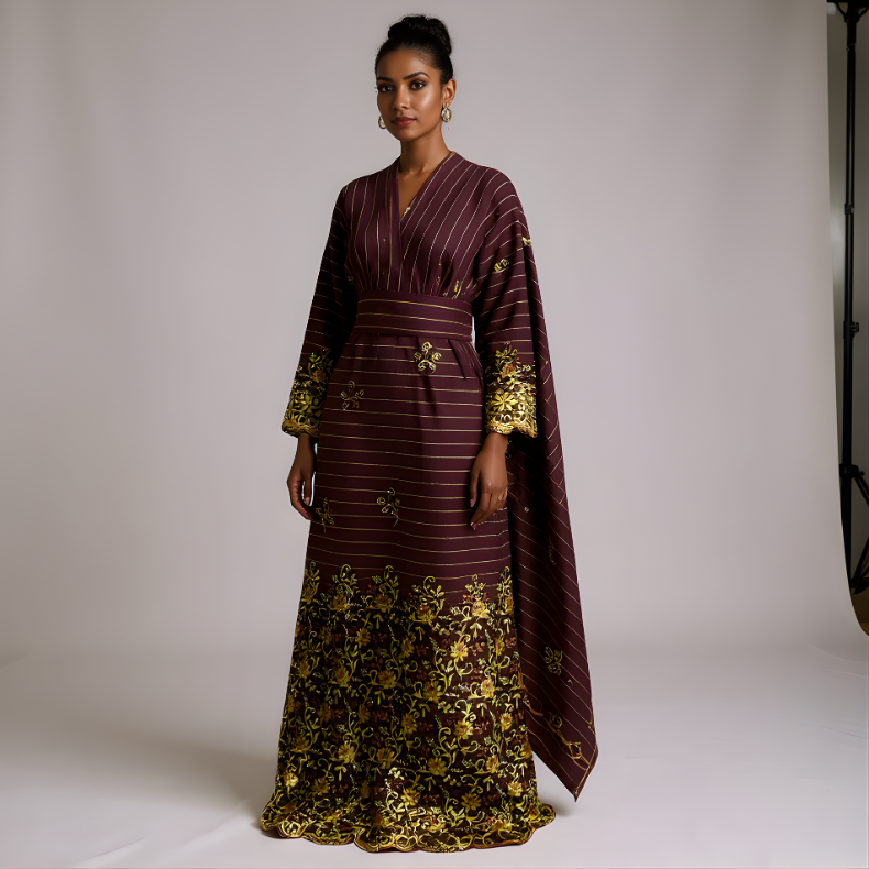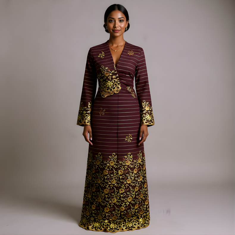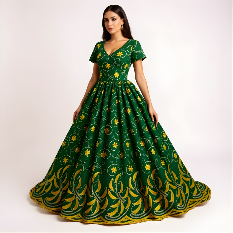 La Salouva Broderies Rouge Vif se distingue par son mélange unique de tradition et d’éclat moderne. Sa couleur rouge vive, vibrante et pleine d’énergie, symbolise la confiance, la force et la féminité. C’est une teinte puissante, idéale pour celles qui souhaitent s’illuminer lors des grands moments.