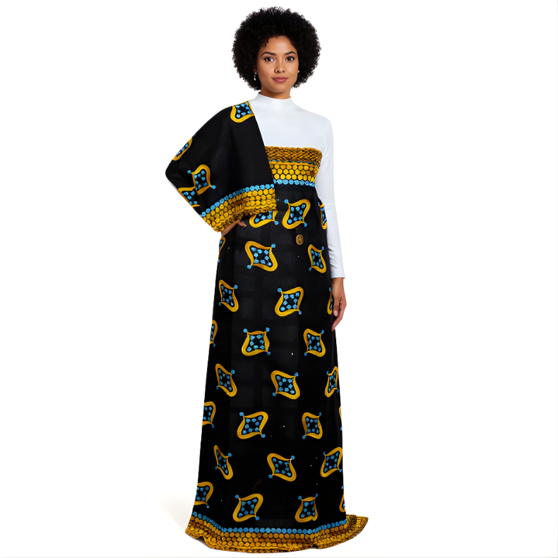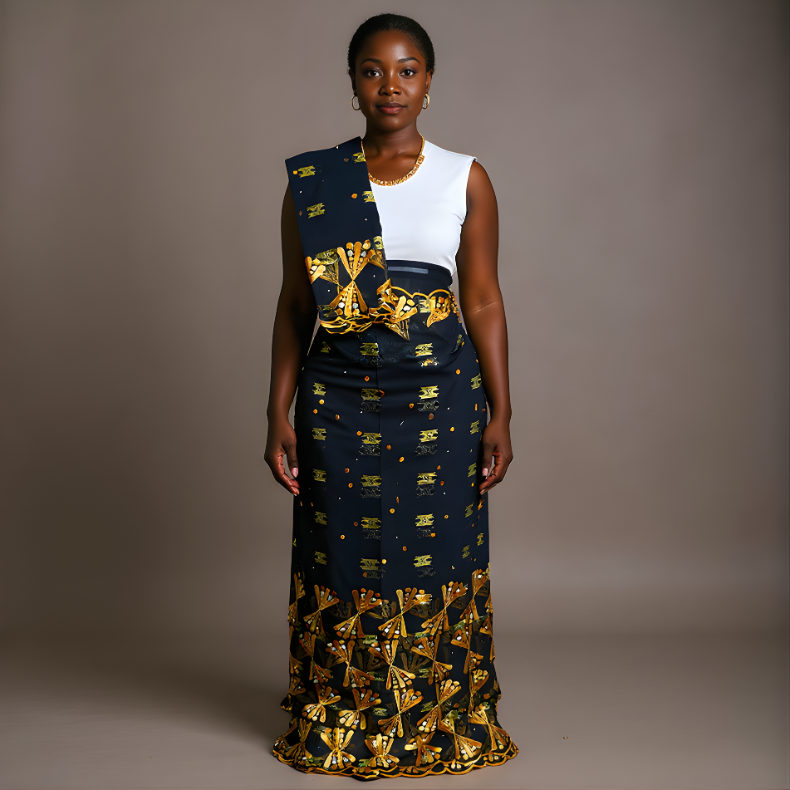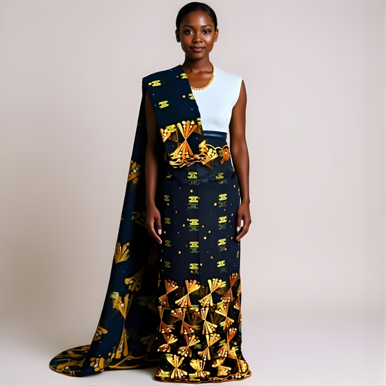 Grâce à son format non cousu, cette Salouva vous permet de créer librement la tenue qui correspond à votre style : robe traditionnelle élégante, boubou moderne, ensemble sur mesure ou tenue de cérémonie sophistiquée.