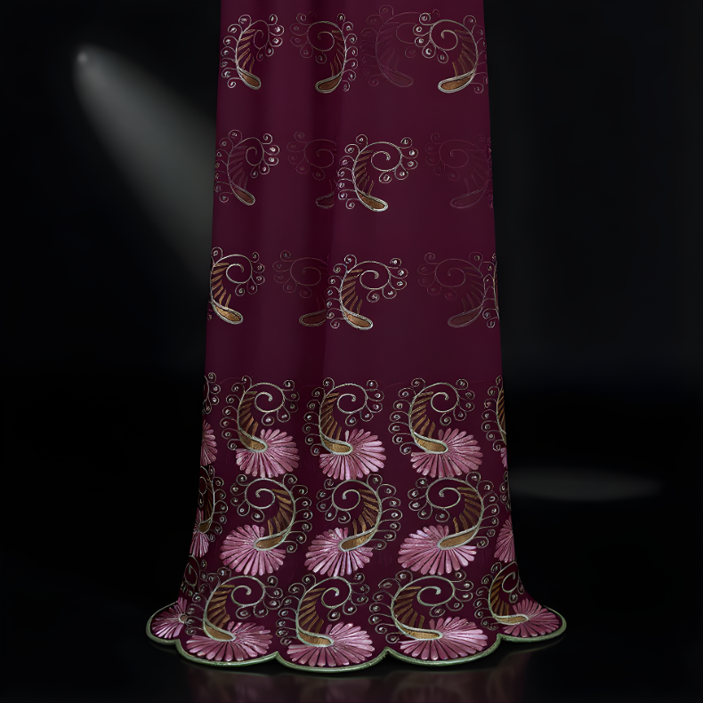 Tissu non cousu en dentelle suisse, magnifié par des broderies éclatantes.