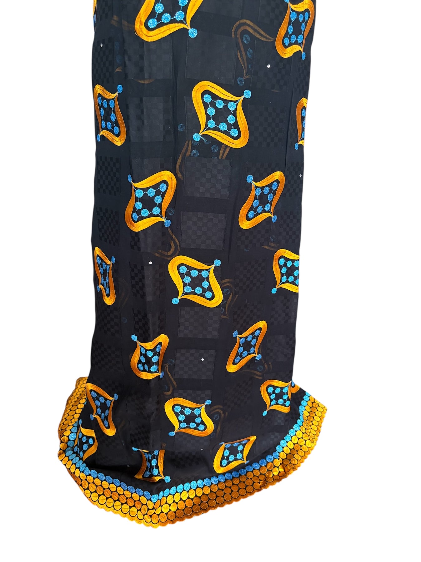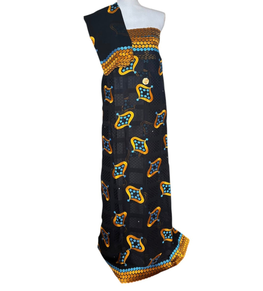 Chaque mètre de cette Salouva non cousue est une œuvre d’art, prête à être transformée en une création unique : boubou, robe, ou tenue de cérémonie sur mesure.
