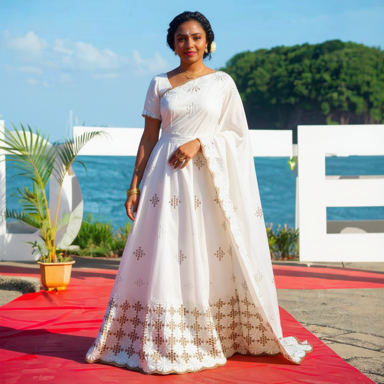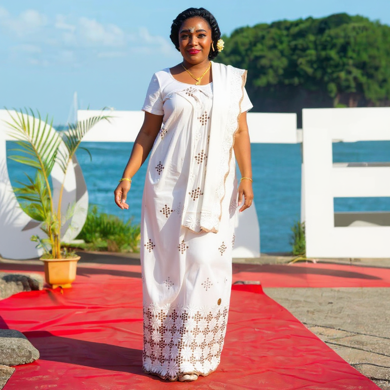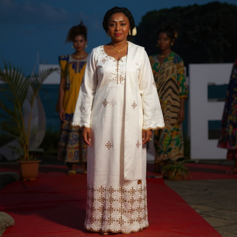 Elle allie le savoir-faire suisse à la grâce intemporelle de la mode africaine, pour une tenue qui attire tous les regards.
