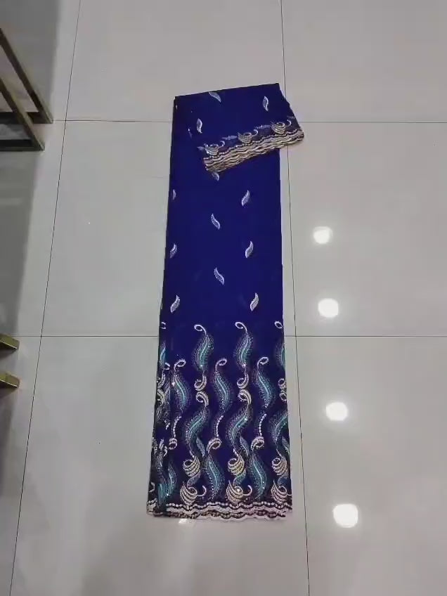 Laissez-vous séduire par la majesté de la Salouva Brodé Vert Émeraude Profond, un tissu non cousu en dentelle suisse, orné de broderies délicates et de cristaux Swarovski étincelants. Une matière d’exception pour créer une tenue africaine chic et luxueuse.